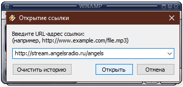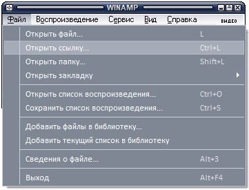 Для прослушивания радио в медиа-плеере «WinAmp» (скачать можно с сайта плеера бесплатно на русском языке): откройте плеер, нажмите левой кнопкой мыши на меню «Файл», затем «Открыть ссылку...» - показано на скриншоте: